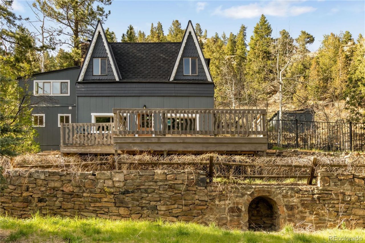 Tucked into the hillside and surrounded by aspens, this mountain chalet offers a unique blend of character, setting, and opportunity. The property sits in a peaceful, private location with a backdrop of greenery, nearby creek access, and expansive mountain views?delivering the kind of Colorado setting buyers are after.Inside, the home features a mix of timeless charm and thoughtful updates, including original knotty pine, a stone-surround wood stove, Brazilian chestnut and tile flooring, and modern fixtures and railings. The kitchen has been remodeled with stainless steel appliances, butcher block countertops, and a breakfast nook that opens to the main living area.Upstairs, the spacious primary bedroom captures breathtaking views and includes an updated ¾ bathroom. Two additional bedrooms, along with a loft space, provide flexibility for guests, office space, or additional sleeping areas.Outdoor living is just as inviting, with a sunny deck located off the main level?perfect for enjoying the quiet surroundings and natural setting.Positioned on a secluded lot with frequent wildlife sightings and big mountain views, the home is ideally located just minutes from Idaho Springs, Floyd Hill, and nearby trail systems. Youll find quick access to hiking, biking, and outdoor recreation, while still being within reach of Denver and the surrounding mountain communities.Professional Photos coming next week!