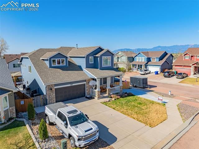 Must See! This bright and sunny 3-bedroom, 3-bath, 2-car garage home sits on a desirable corner lot near Highway 24 and Marksheffel, with easy access to Powers and the military bases. Immaculately maintained and featuring neutral finishes throughout, this home offers both comfort and functionality with two spacious living areas perfect for relaxing or entertaining. The large kitchen includes all appliances. The private upper-level master suite features vaulted ceilings and a loft/office area overlooking the living room. The master bathroom includes a jetted tub, freestanding shower, and a vanity with a built-in makeup station. You’ll also love the huge laundry room with an adjustable shelving system, plus a large unfinished basement ready for storage or future expansion. Step outside to a spacious yard that includes a storage shed, perfect for tools, equipment, or extra storage. Best of all, there is no HOA or neighborhood covenants to worry about. An added bonus is the RV-friendly setup, featuring a concrete extension off the front driveway for easy drive-through access into the rock bed, providing convenient parking for your RV or additional vehicles.